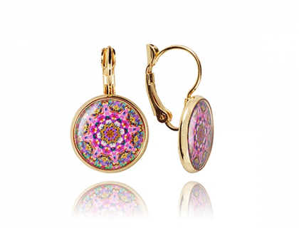 Circular Kaleidoscope garden earrings guaranteed to put some fizz in your day. Earrings are made brass and Gold plated. Size-14mmx28mm.