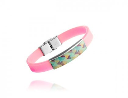 Circular pink silicon modern design bracelet guaranteed to make your perfect outfit. Design part is made of steel. Strap length - 16-17 cm