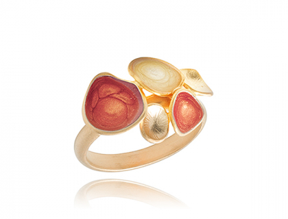 Separated scales wrap around ring; hand painted with delicate colours -Coral Red and Ivory to make a strong statement. Adjustable Ring. Size 12x20 mm