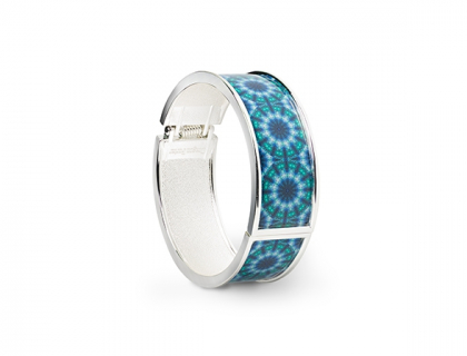 Circular cornflower blue modern design cuff bracelet guaranteed to put some fizz in your day. Bracelet is made of steel. Size - 20mm