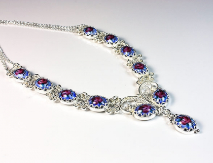 A special kind of elitist art where exquisite miniature paintings are painstakingly made on to enamel and then joined together using the Russian technique of "Filigree" whereby metal is formed into beautiful shapes to connect the enamel minatures. Wearing an Enamel necklace, you can feel elegant and aristocratic, as a member of Salon Anna Scherer from Leo Tolstoy's novel "War and Peace".