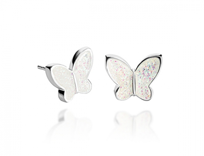 Sparkling WHITE butterfly stud earrings, hand painted with love to put some shimmer in your day. Stud Earrings plated by silver 925. Size-12mm.
