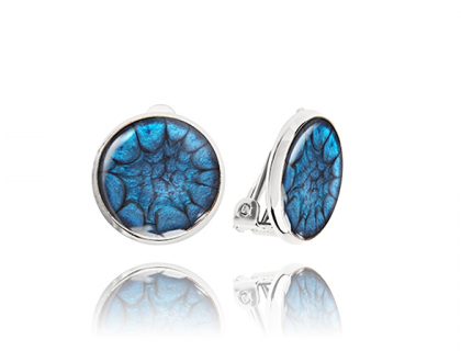 Sophisticated molten sapphire stone effect clip earrings for unpierced ears. Delicately created by hand, to provide an understated elegance; ideal for the discerning fashionista. SIZE: 14 mm diameter.