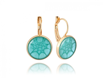 Classic Circular Turquoise earrings with pattern pools; merging heavenly bodies , promoting calm and confidence. Earrings Gold plated . Size-14mmx28mm.