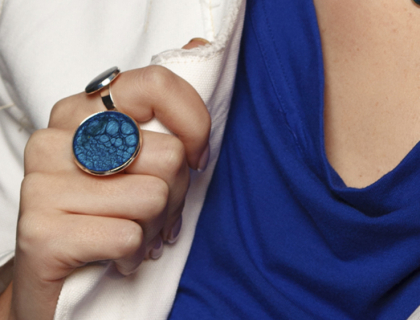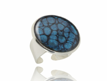Dark Blue AGJUSTABLE STATEMENT ring, hand crafted scales in deepwith gilded pools: to enchant the owner and bewitch the beholders. Ring silver plated . Size -25mm