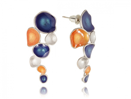 Удлиняющий дизайн серьги с ручной росписью сине-оранжевого цвета подчеркнет вашу природную красоту. Швензы серебряные. Размер серьги 17mm x 38 mm. Покрытие серебро