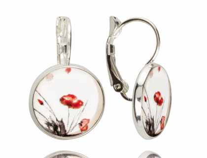 Круглые сережки с красными маками несомненно внесут искорку в ваш день. Сережки покрыты серебром 925 пробы. Размер-14мм x 25мм.