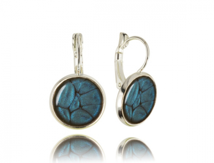 Сережки синего цвета с неповторимым рисунком кожи рептилии выполненные в классическом стиле. Вдохновение уверенности и спокойствия. Без аллергенный метал покрыт Серебром . Размер -14mmx28mm.