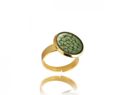 Небольшое классическое зеленое колечко источает вечную элегантность. Без аллергенный метал покрыт золотом. Размер -14 mm.
