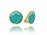 Классические, бирюзовые серьги-клипсы- для тех, у кого не проколоты уши. Клипсы станут необходимым аксессуаром и на каждый день, и на мероприятие. Оттенок изделия может не значительно отличаться от фотографии, в связи с различием экрана вашего монитора и его настройками цвета. Все украшения расписываются в ручную и поэтому узор каждого изделия уникален. Диаметр круга 1.4см, застежка-клипса не давит на ухо, что позволяет носить серьги клипсы длительное время в течении дня. Серьги из бижутерного сплава с гальваническим покрытием золота 18К.