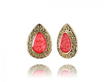 Красные гвоздики в форме капли источают вечную элегантность. Гипоаллергенный металл покрыт золотом 18К. Размер -12 мм.