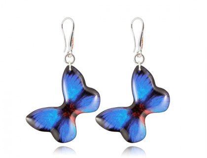 BUTTERFLY BLUE EARRINGS. The unique technology – the LIGTEST and DOUBLE SIDED earrings. They a sense of ease and fullness of life. DIMENSION: 35 mm butterfly length, Drop Length 50 mm.