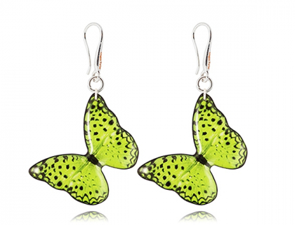 BUTTERFLY GREEN TIGER EARRINGS. The unique technology – the LIGTEST and DOUBLE SIDED earrings. They a sense of ease and fullness of life. DIMENSION: 35 mm butterfly length, Drop Length 50 mm.