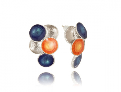 Small Leaf earrings hand painted with vibrant - Dark Blue - Orange colours to bring out your natural beauty. 16mm x 22mm. Silver plated.
