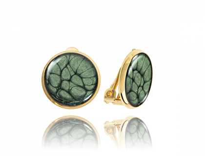 Sophisticated molten malachite stone effect clip earrings for unpierced ears. Delicately created by hand, to provide an understated elegance; ideal for the discerning fashionista. SIZE: 14 mm diameter.