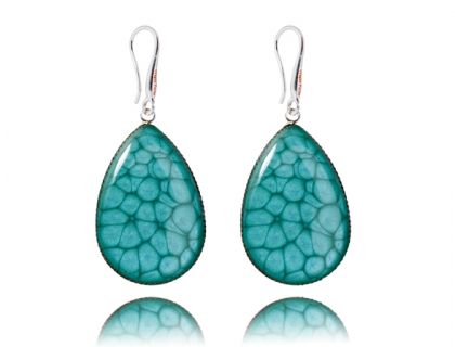 Aquamarine tear drop earrings for pierced ears. Elegant and artistic Sapphire stone effect earrings, delicately created by hand, to provide an understated elegance. Size: 30 mm drop length, Total Length 40 mm. 925 Silver plated brass mount (nickel and lead free).