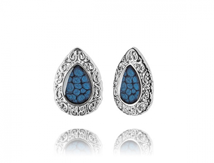 Dark BLUE Drop shape Stud earring hand crafted scales with a polished finish: exuding effortless class. Stud Earrings plated by silver 925 . Size-12mm.