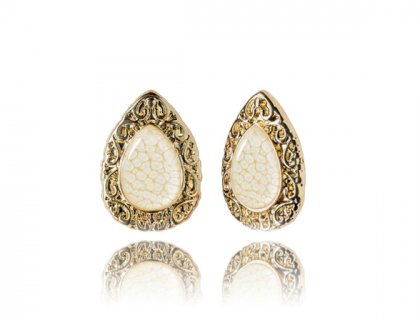 Ivory white Drop shape Stud earring hand crafted scales with a polished finish: exuding effortless class. Stud Earrings plated by gold 18K . Size-12mm.