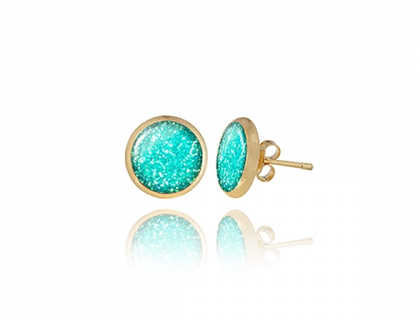 Cyan sky shimmer stud earrings with pattern pools . guaranteed to put some fizz in your day. Earrings are made brass and Gold plated. Size-14mmx28m. L'etoile -let your style shine!