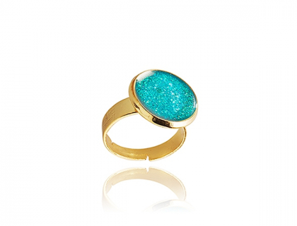 Adjustable cyan sky shimmerring- guaranteed to put some fizz in your day. Ring hand crafted gold plated . Size -14mm. L'etoile -let your style shine!
