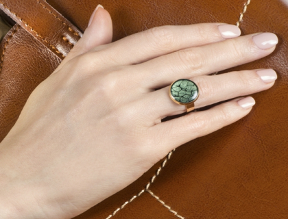 Dark Green Classic ring hand crafted scales with a polished finish: exuding effortless class. Ring gold plated . Size -14mm